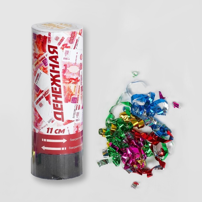 Хлопушка пружинная «Денег», 11 см (конфетти + серпантин)