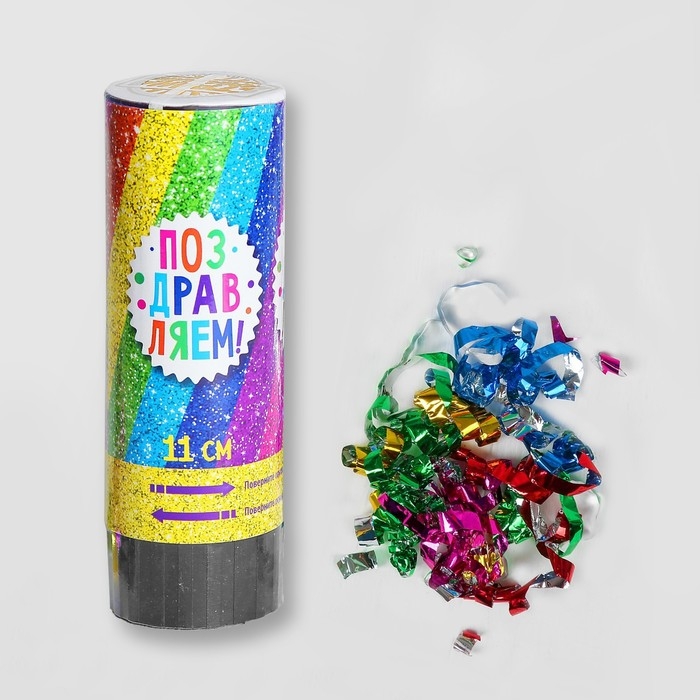 Хлопушка пружинная «Поздравляем», конфетти, серпантин, 11 см