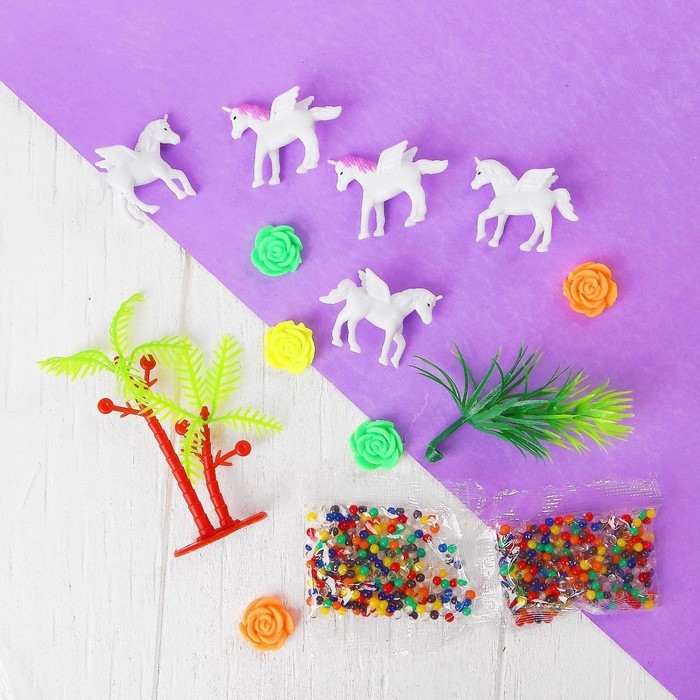 В наборе есть пластиковые растения, растущие игрушки и поддон для игры. Ваш ребенок с увлечением будет играть с ними.