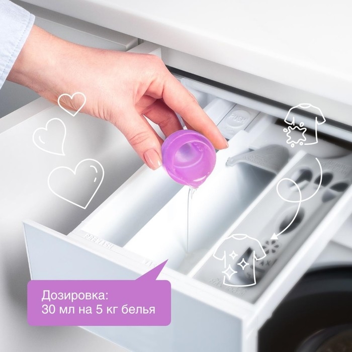 Беречь от детей. При попадании средства в глаза промыть водой. Использовать строго по назначению. Состав: Подготовленная вода > 30%; К-тензиды (ПАВ из растительного масла) 5–15%; парфюмерная композиция с натуральными эфирными маслами лаванды и литсеи; пищевые красители.