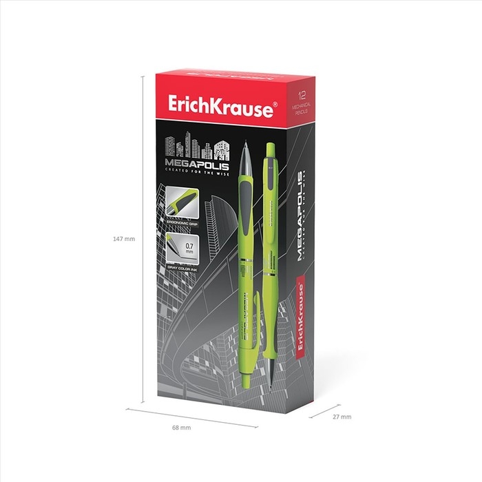 Карандаш механический ErichKrause "Megapolis Concept", НВ, грифель d=0.7 мм, резиновый упор, в коробке, неоновый корпус