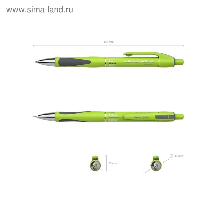 - Карандаш имеет круглый неоновый корпус с эргономичной грип-зоной, оснащенной двумя резиновыми вставками.