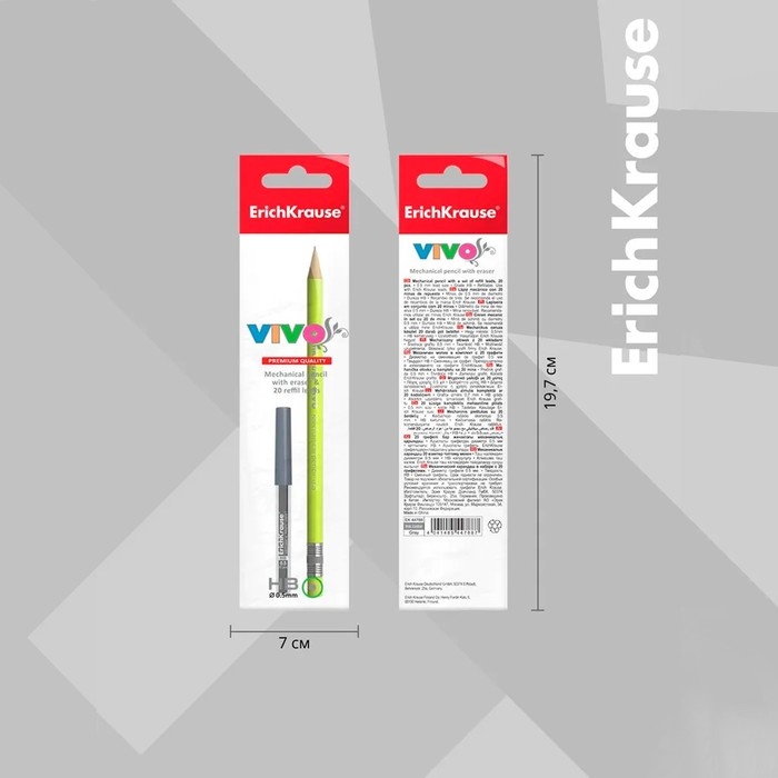 Набор карандаш механический ErichKrause "Vivo", НВ, грифель d=0.5 мм, 20 грифелей, в пакете, микс
