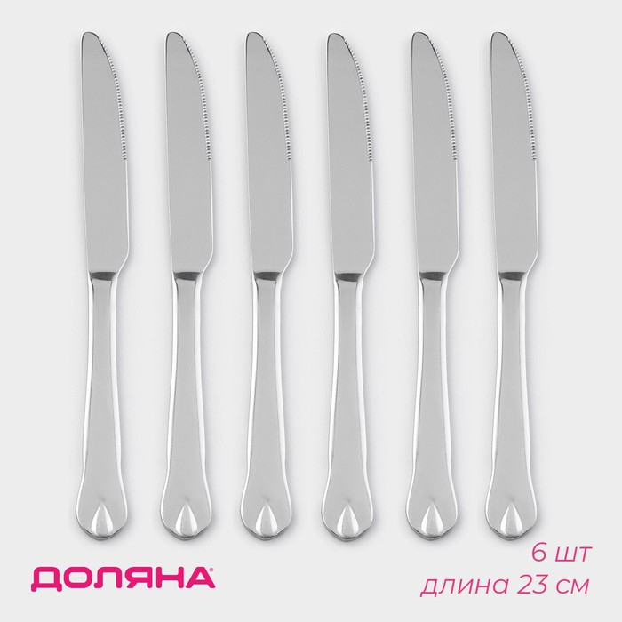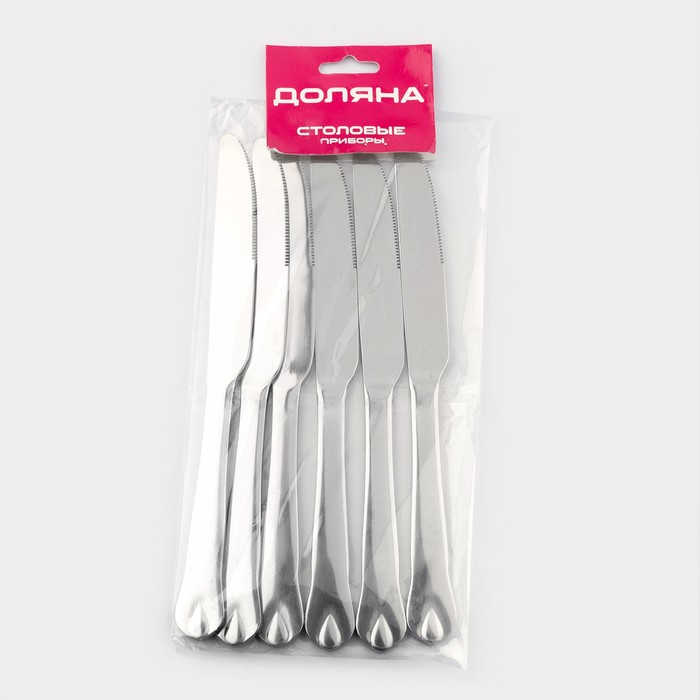 Ножи столовые из нержавеющей стали Доляна «Капля», длина 23 см, 6 шт, цвет серебряный