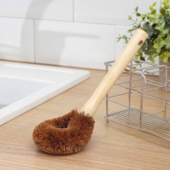 Щётка для чистки посуды Доляна, 8×4,5×23 см, щетина кокос, деревянная ручка
