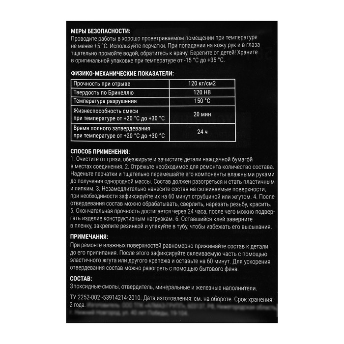 Холодная сварка Ремтека Титан РМ 0110, для стали, усиленная, 55 гр