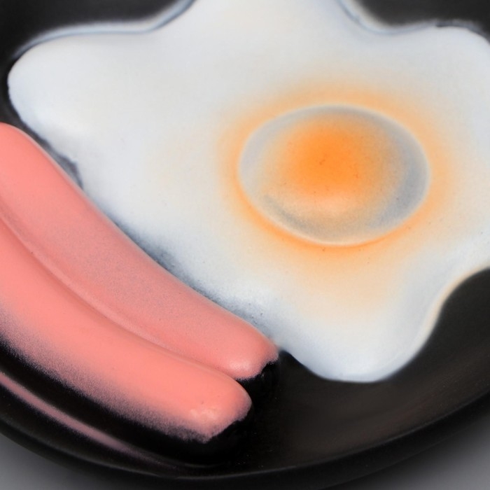 Игрушка пищащая "Завтрак" для собак, 13,5 см, на чёрной тарелке