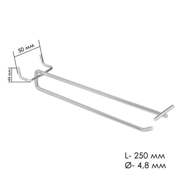Крючок одинарный с ценникодержателем для металлической перфорированной панели, шаг 50 мм, d=4,8 мм, L=25 см, цвет хром