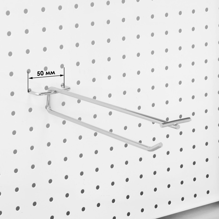 Крючок одинарный для металлической перфорированной панели, d=6 мм, L=25 см, шаг 25 мм, цвет хром