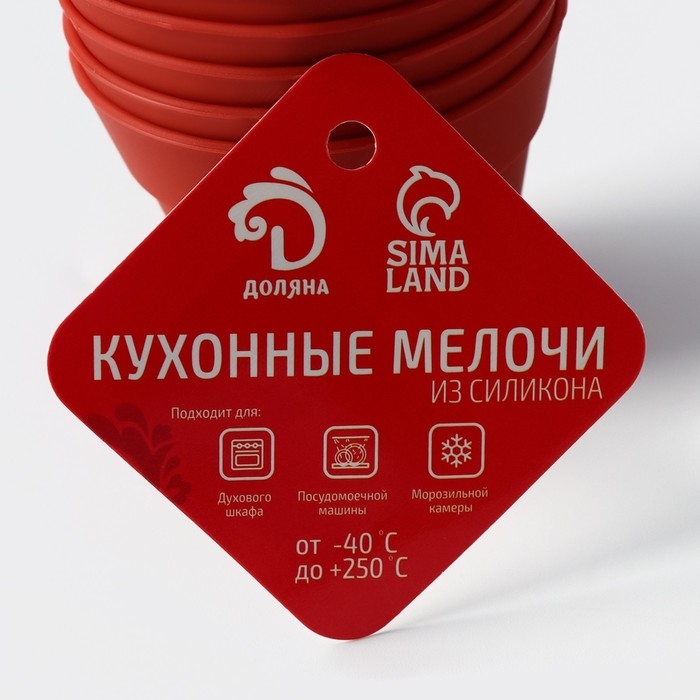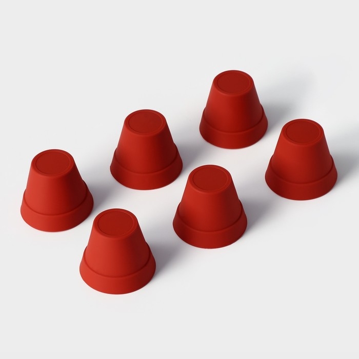 Набор форм для выпечки Доляна «Цветочные горшочки», силикон, 7×5,5 см, 6 шт, цвет красный