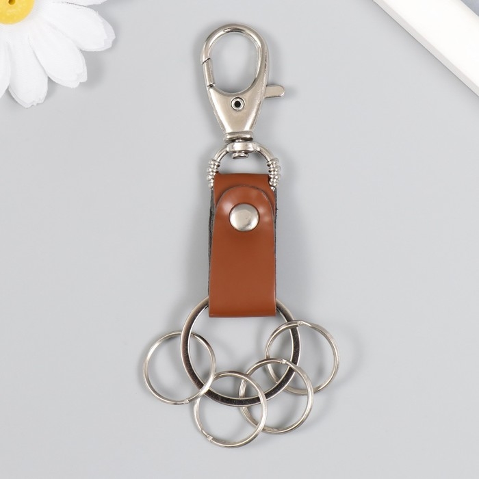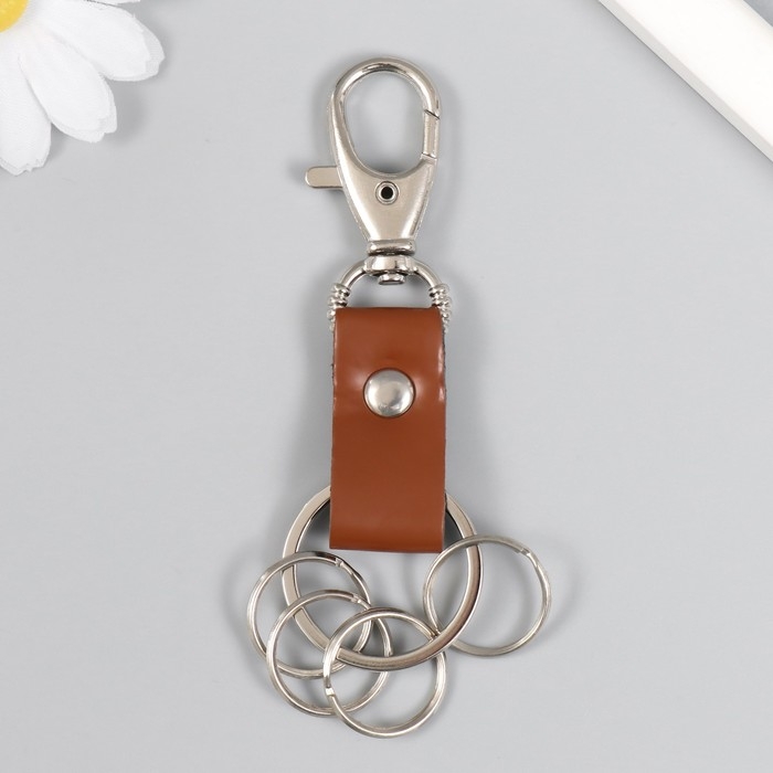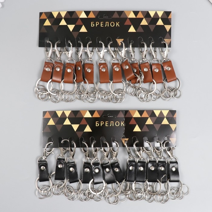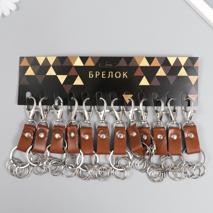 Брелок металл кожзам с карабином коричневый/черный 12х3,4