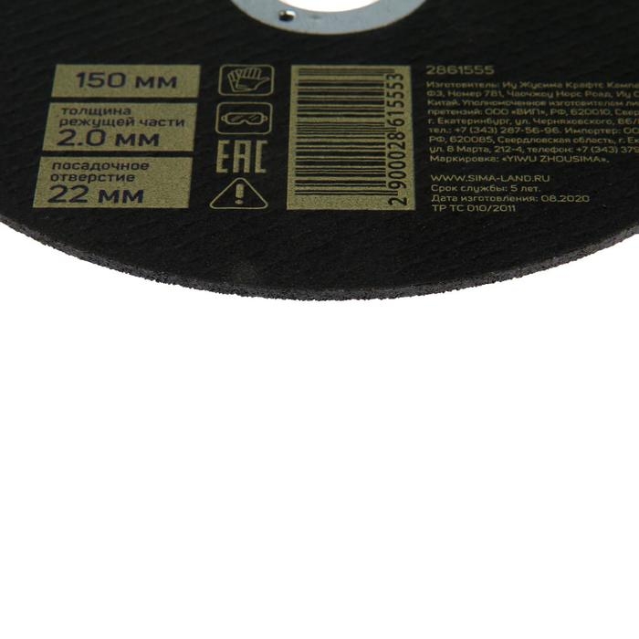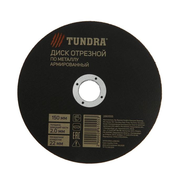 Круг отрезной по металлу ТУНДРА, армированный, 150 х 2.0 х 22 мм