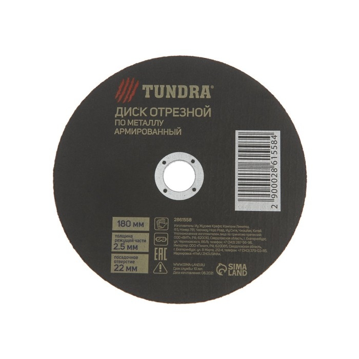 Круг отрезной по металлу ТУНДРА, армированный, 180 х 2.5 х 22 мм