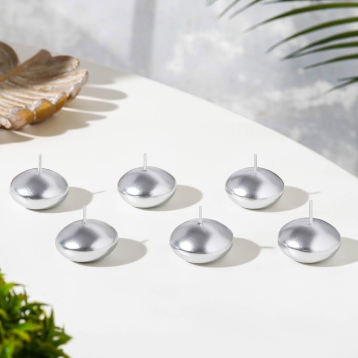 Набор плавающих свечей "Овал", 6 штук, серебристая, 4×2см