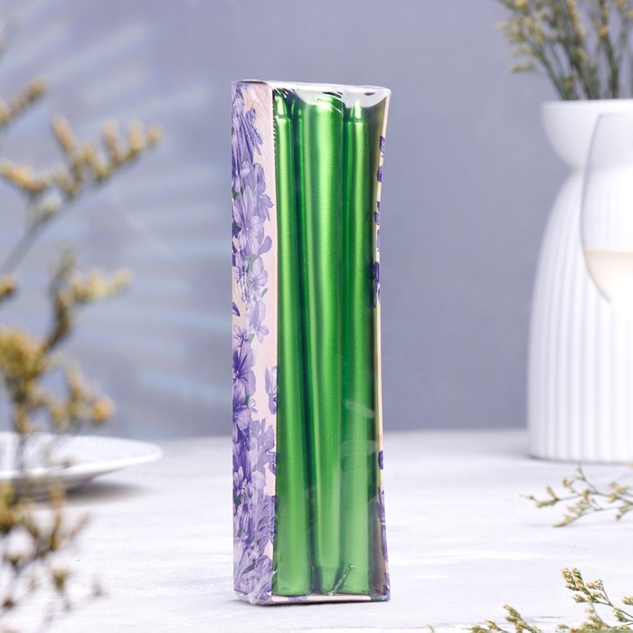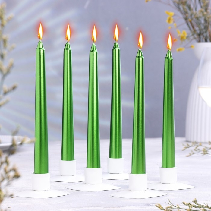 Набор Свечей античных, 1,9х 20 см, 6 штук, зелёный металлик