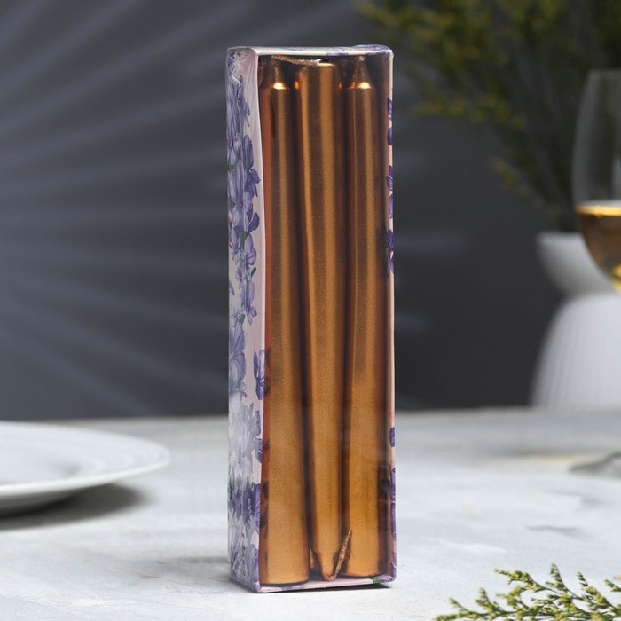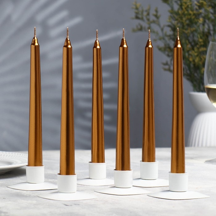 Набор Свечей античных, 1,9х 20 см, 6 штук, кофейно-золотой металлик