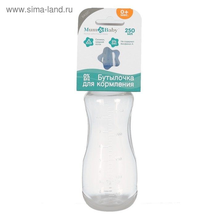 Бутылочка для кормления, классическое горло, приталенная, 250 мл., от 3 мес., цвет синий