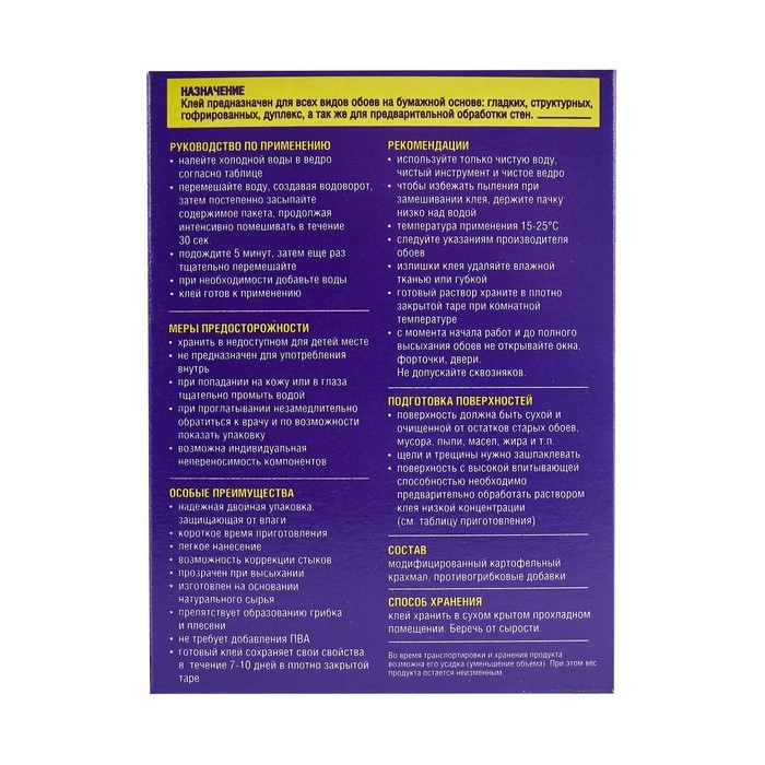 Клей предназначен для всех типов обоев.