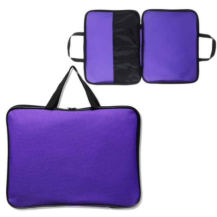 Папка-портфельформата А4, размер 360×270×20мм, изготовлена изткани, предназначена для переноски ихранения документов. Оснащена молнией. Папка имеет две ручки из тесьмы. Есть внутренний карман, предназначенный для различных мелочей.