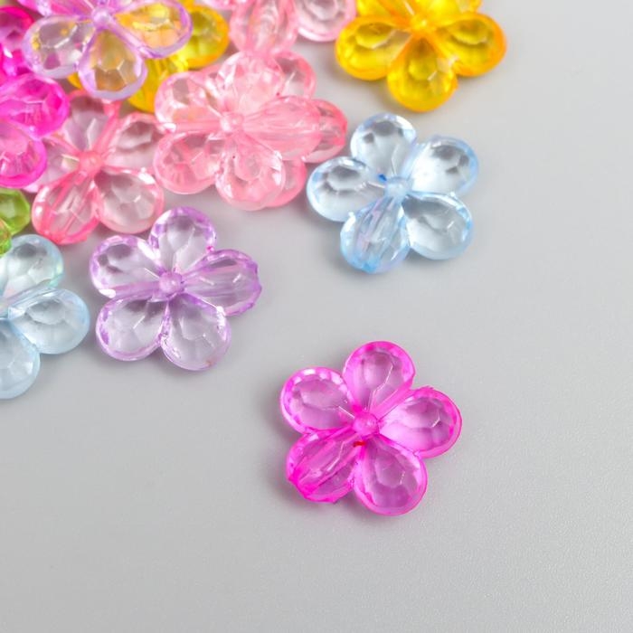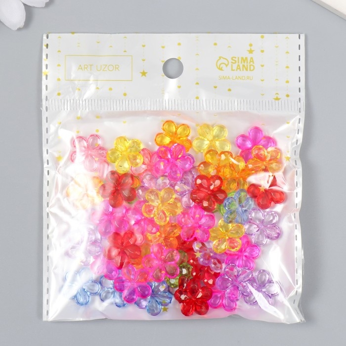 Декор для творчества пластик "Цветок" прозрачный набор 50 шт 1,2х1,2 см