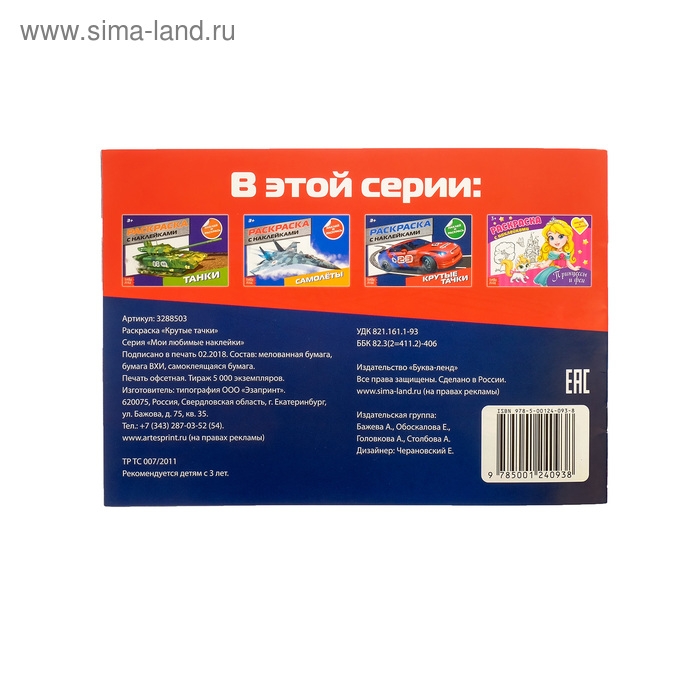Раскраска с наклейками «Крутые тачки», 16 стр.