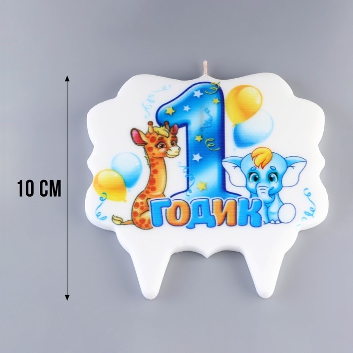 Свеча для торта цифра «1 годик, зверушки» "1" синяя, 8 см