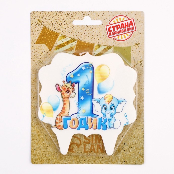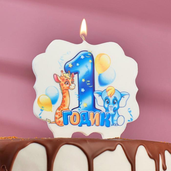 Свеча в торт на шпажке для мальчиков "Мне годик", 7,7 см, 12 мин, 65 г