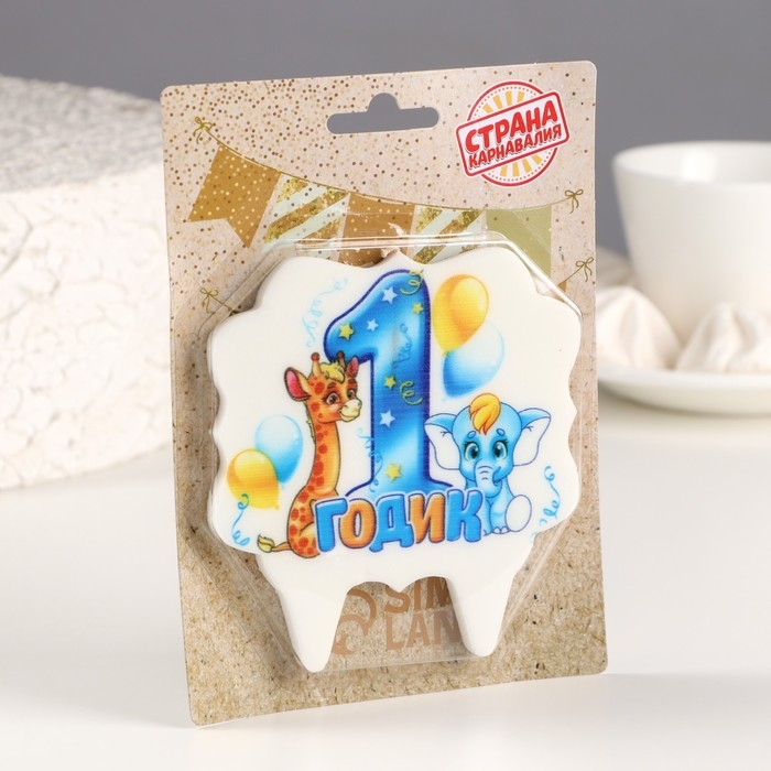 Свеча в торт "Мне годик!" с жирафом и совой, 9,7 см, 12 мин, 40 г
