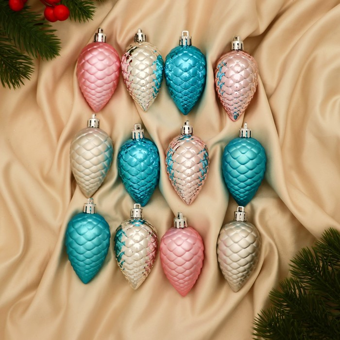Украшение ёлочное "Шишка" (набор 12 шт) 6 см, микс