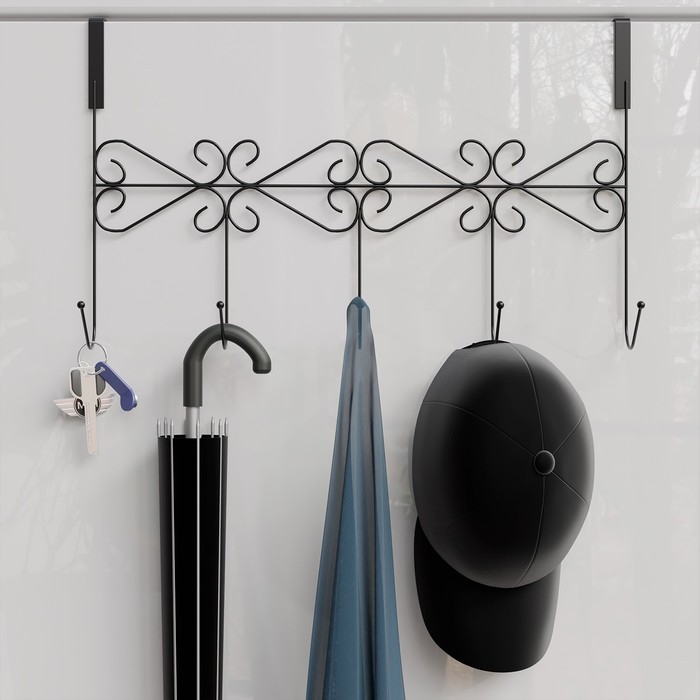 Вешалка на дверь на 5 крючков Доляна «Вензель», 38×22,5×10 см, цвет чёрный