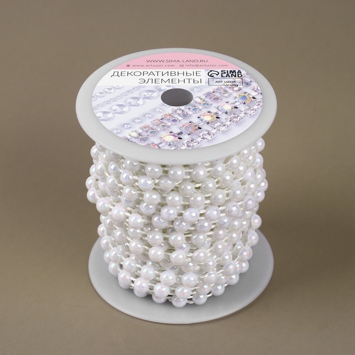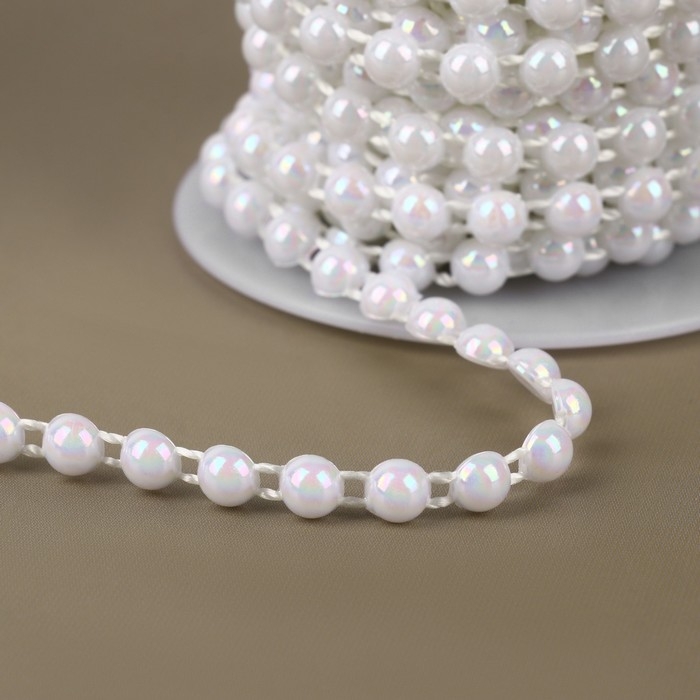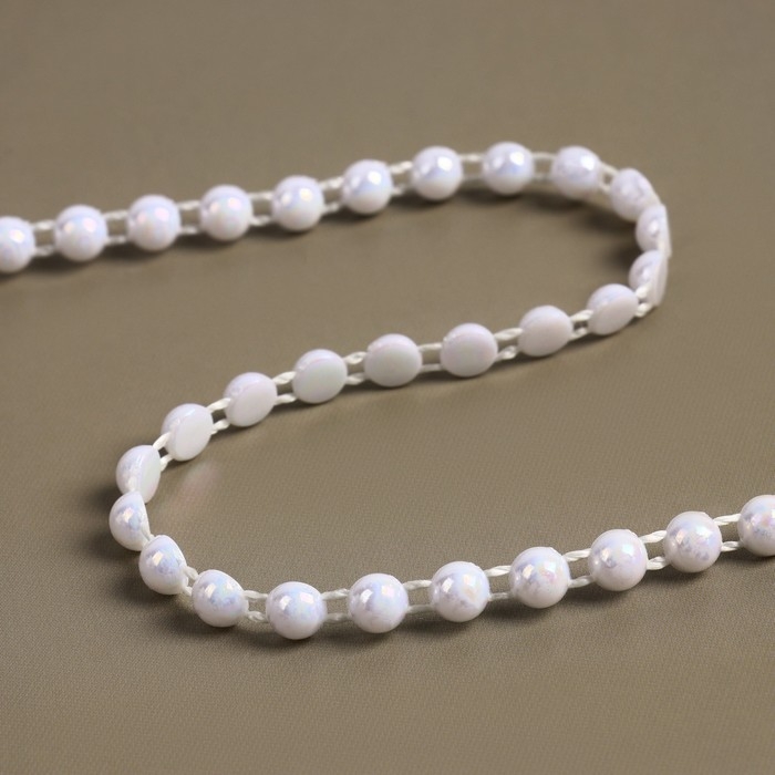 Жемчуг на нитях, с голографией, плоский, 6 мм, 9 ± 1 м, цвет белый