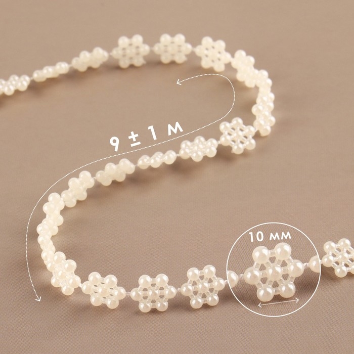 Жемчуг на нитях, плоский, 10 мм, 9 ± 1 м, цвет молочный