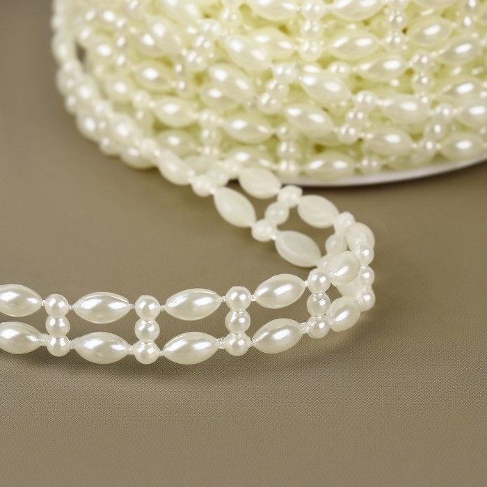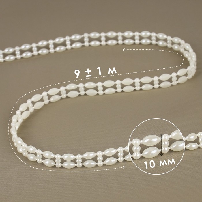 Жемчуг на нитях, плоский, 10 мм, 9 ± 1 м, цвет молочный