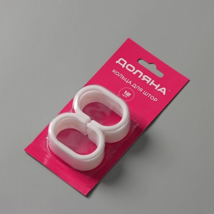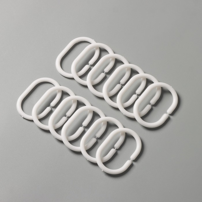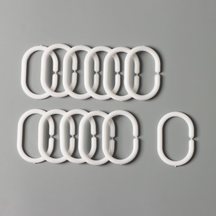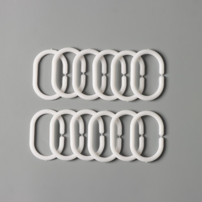 Кольца для штор Доляна, в ванную, пластик, 12 шт, 5,7×3,8 см, цвет белый
