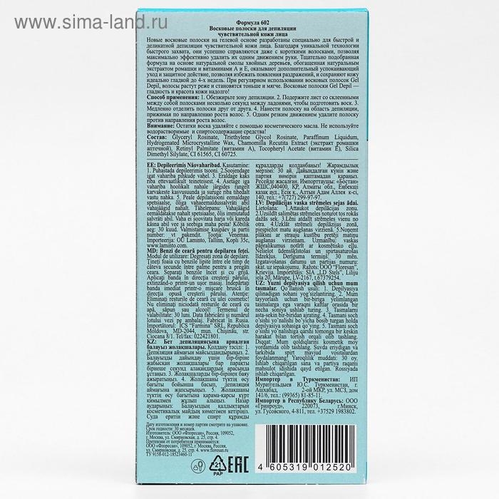 Восковые полоски Gel-depil для депиляции сухой и чувствительной кожи лица, 20 шт