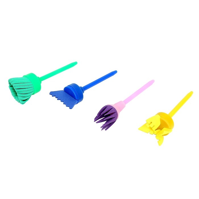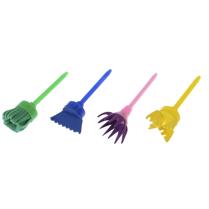 - В комплекте 4 кисточки с различным наконечниками, что позволит малышу рисовать необычные узоры.