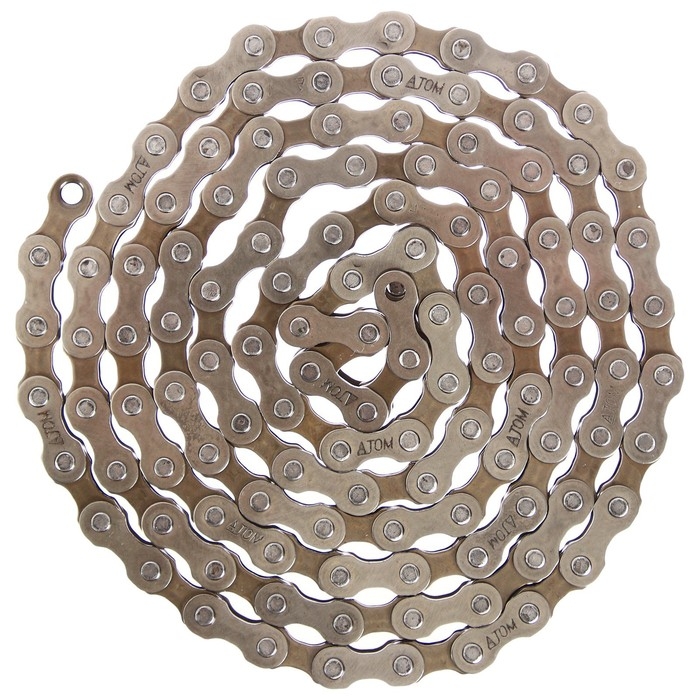 Универсальная велосипедная цепь на 5, 6, 7 скоростей подходит для горных и шоссейных велосипедов. Усилие на разрыв — 1500 кг.