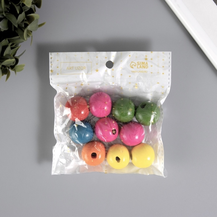 Бусина дерево "Шарики цветные" набор 10 шт 2,5х2,5 см