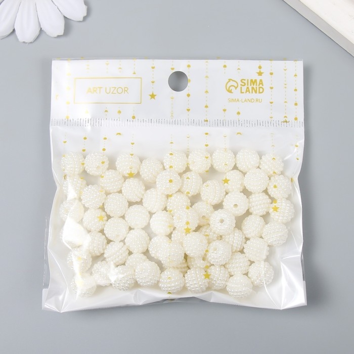 Бусины для творчества пластик "Ребристые" жемчужная набор d=1 см 20 гр