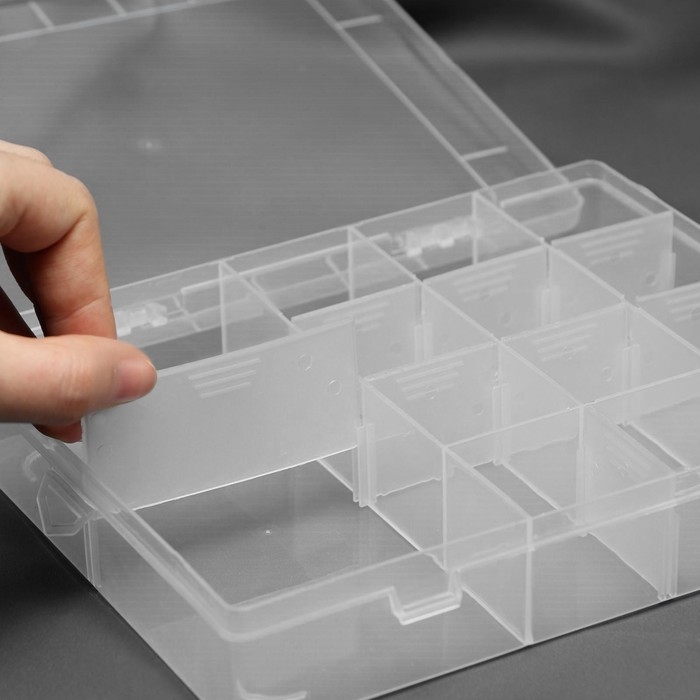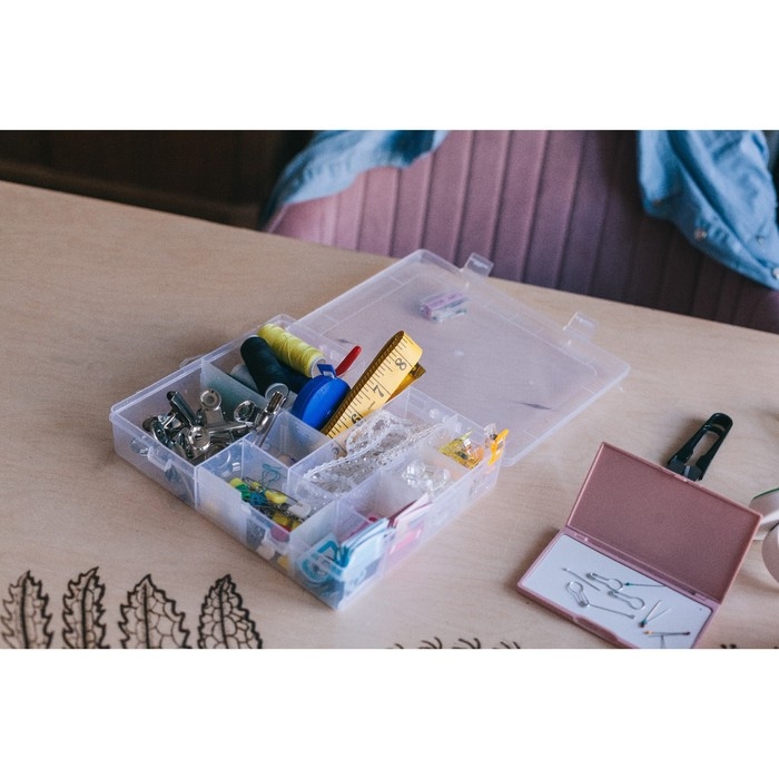 Органайзер для рукоделия, со съёмными ячейками, 14 отделений, 21 × 17 × 4 см, цвет прозрачный