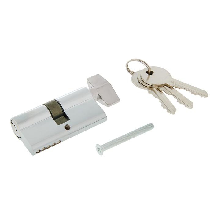 Цилиндровый механизм, 60 мм, с вертушкой, английский ключ, 3 ключа, хром
