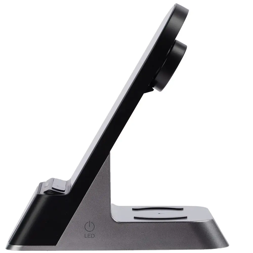 Зарядная станция c часами E-Store для смартфона, часов и наушников, черная