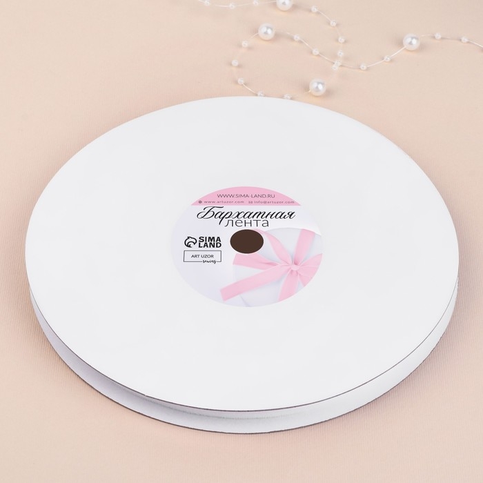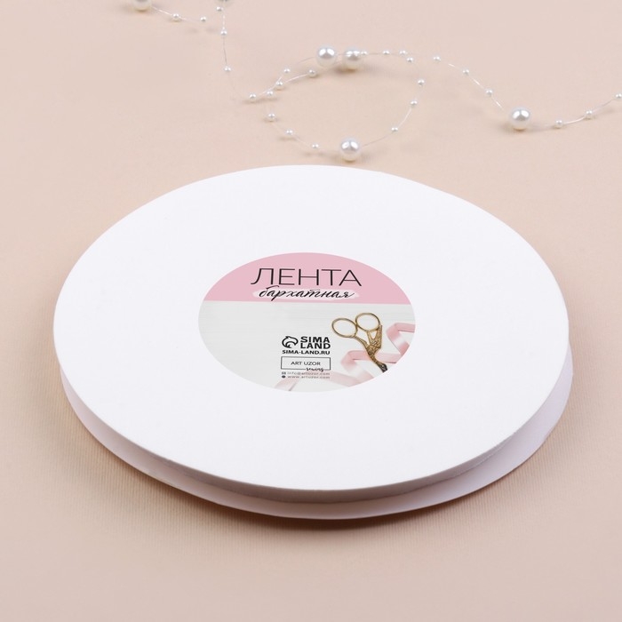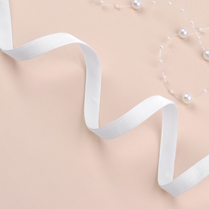 Лента бархатная, 10 мм, 18 ± 1 м, цвет белый №01