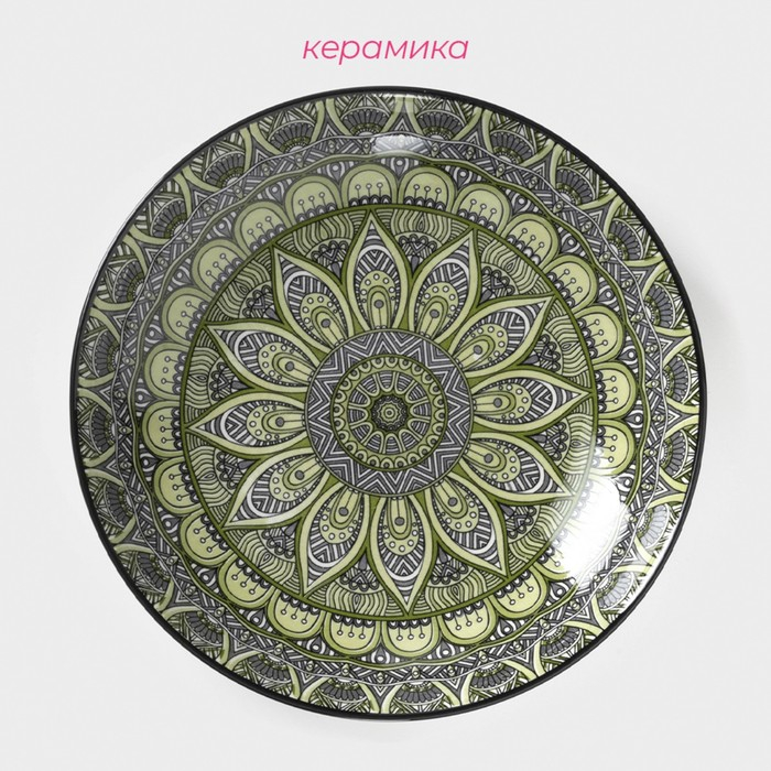 Тарелка глубокая керамическая Доляна «Мирсоле», d=21 см, цвет зелёный