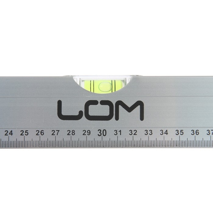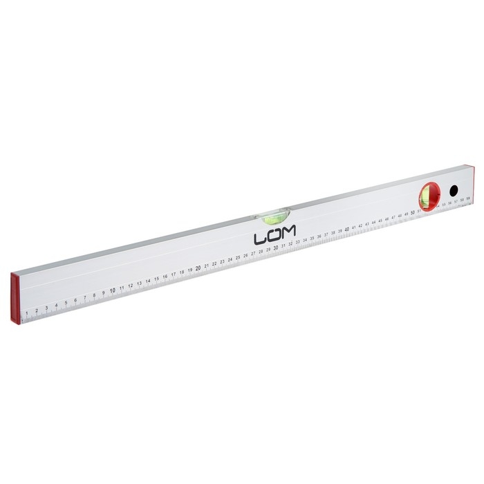 Уровень ЛОМ выполнен из прочного алюминиевого профиля прямоугольной формы. Инструмент оснащён пластмассовыми заглушками на обоих концах. Модель имеет 2 мерительных глазка для проверки отклонений по горизонтали и вертикали.