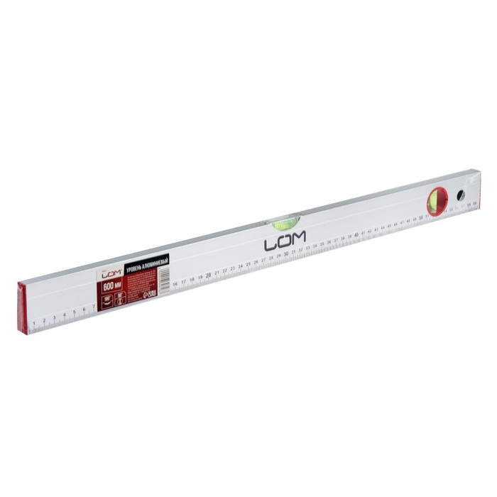 Уровень алюминиевый ЛОМ, 2 глазка, линейка, 600 мм
