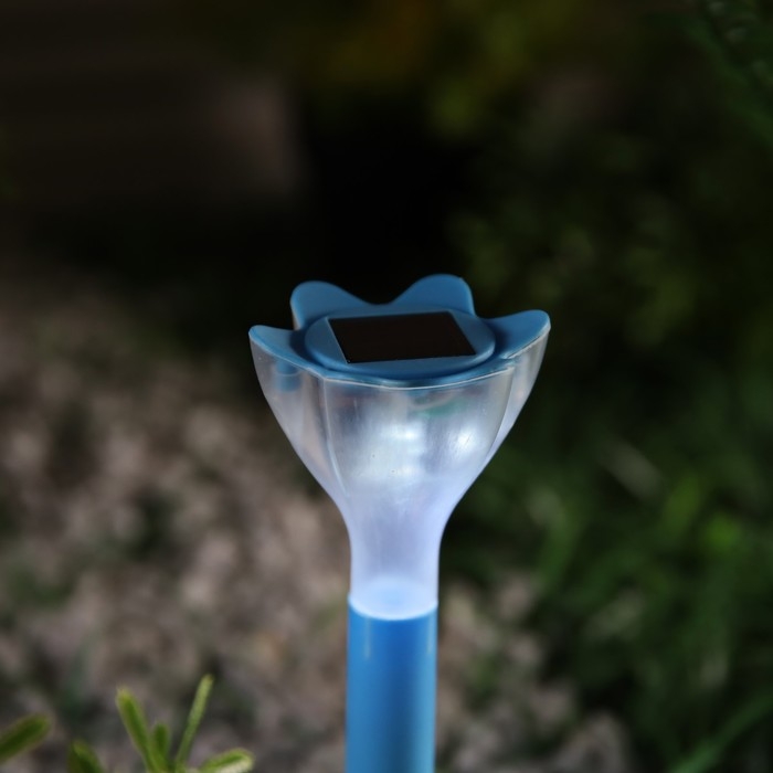 Садовый светильник на солнечной батарее «Цветок голубой», 6 × 29 × 6 см, 1 LED, свечение белое