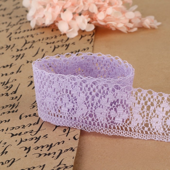 Кружево капроновое, 35 мм × 10 ± 1 м, цвет сиреневый