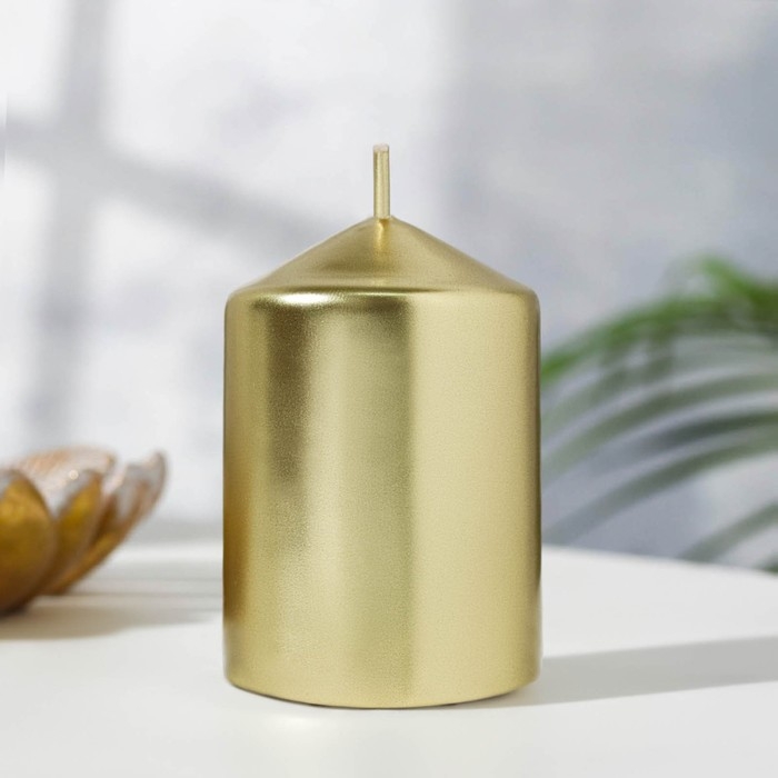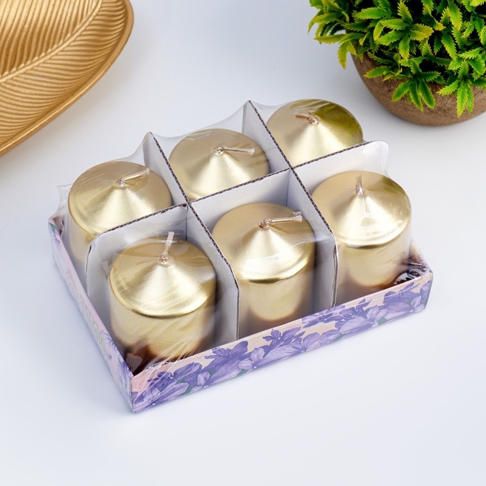 Набор свечей-цилиндров на подставке "Интерьерный", 3 шт, золотой