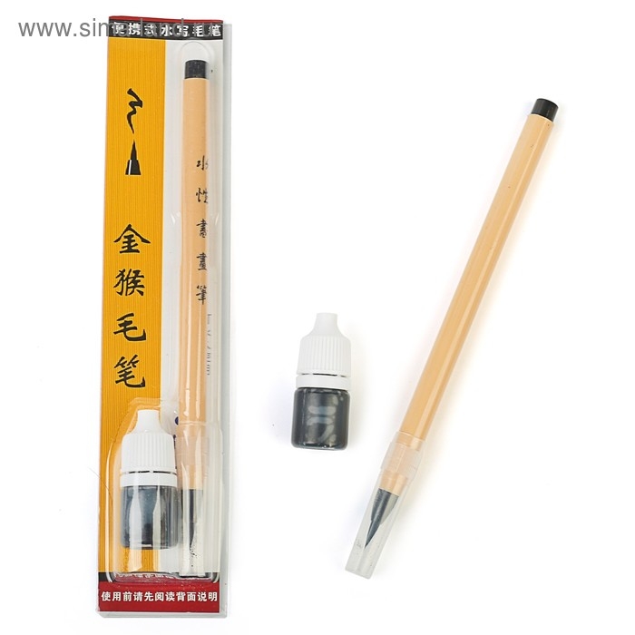 Кисть каллиграфическая с тушью, в блистере